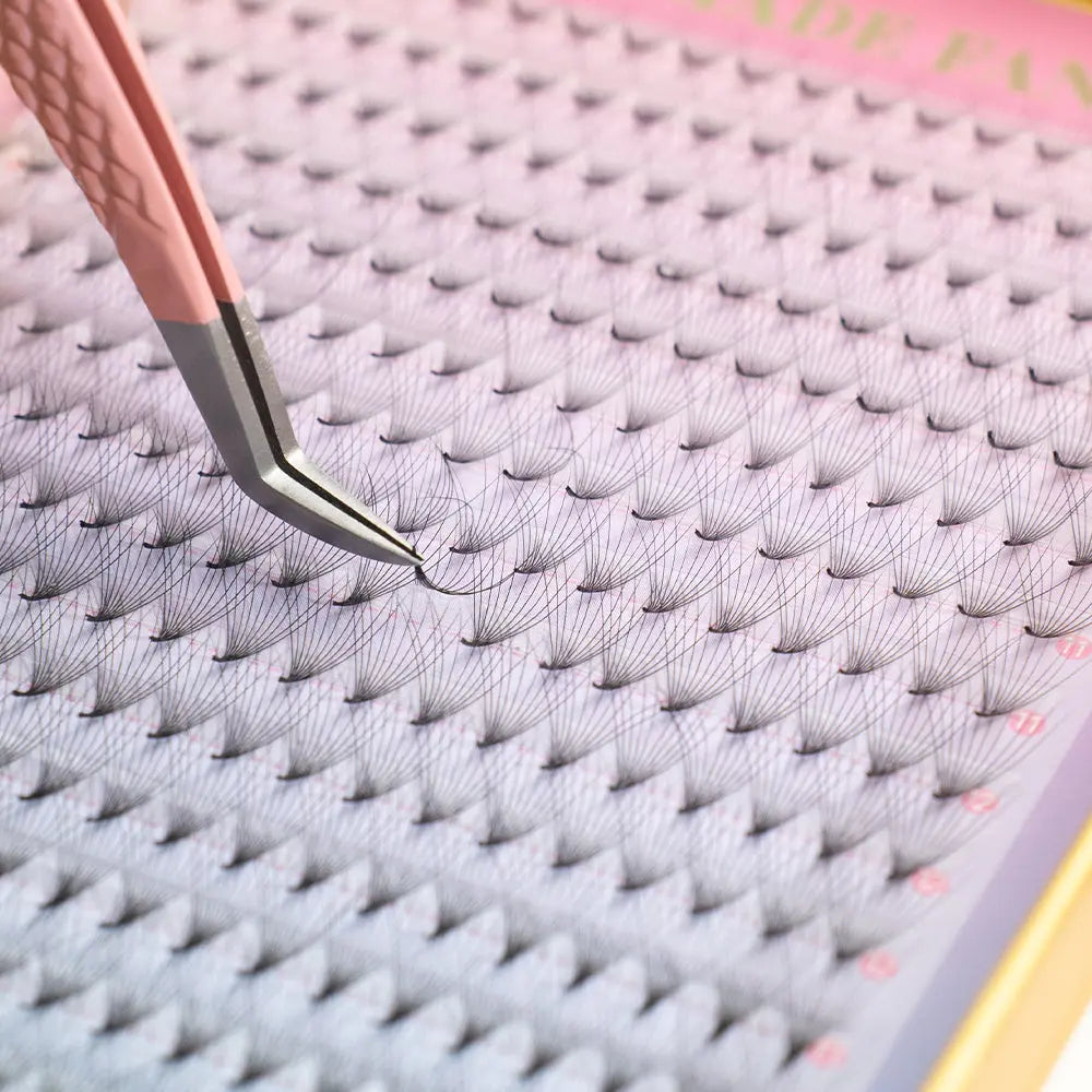Time is money, especially in a busy salon. Our lashes are designed for quick and easy application. The heat-bonded pointy base makes grafting a breeze while retaining the lash curl for over a year. Choose from a wide range of lengths, from 8MM to 15MM, to give your clients a customized look that is both natural and strikingly beautiful. Our pre-made volume fans are conveniently packaged with 320 fans per tray, ensuring you won't run out in the middle of a busy day.